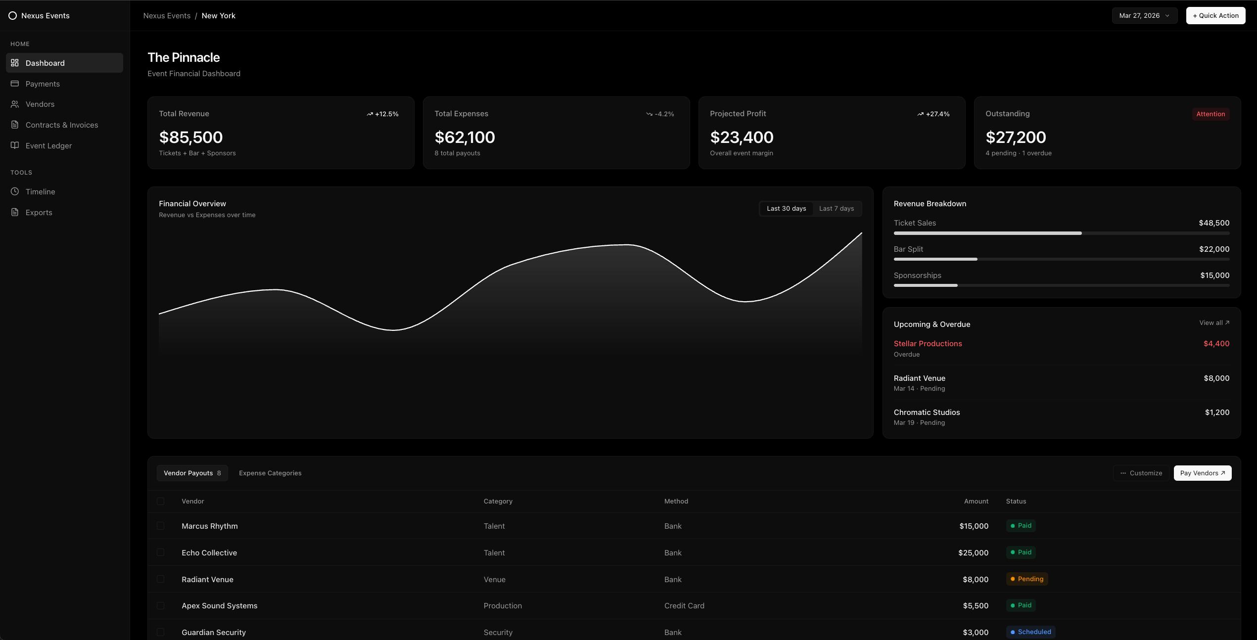 Bookings, contracts, finances, splits โ stop context-switching between 10 tools.